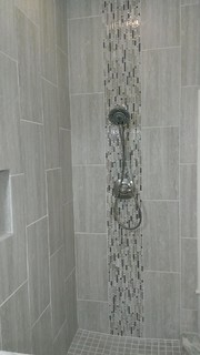 #MasterBathroom | Custom Surface Solutions - Owner Craig Thompson (512) 430-1215. This project shows a remodeled master bathroom with 12" x 24" tile on a vertical offset pattern