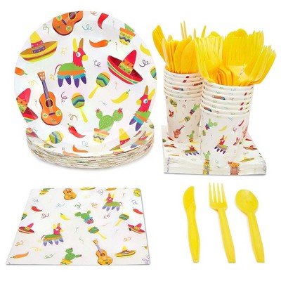 24 Set Disposable Dinnerware for Birthday Cinco de Mayo Mexican Fiesta Party